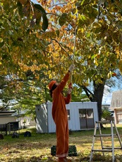 手ぶらで参加OK!基本的には安全な作業で、高枝切りバサミでの収穫や切り落とした枝から実をもぎとっていただく内容です。